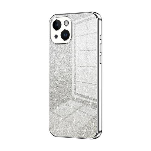 Estuche para Teléfono iPhone 14 Galvanizado con Polvo de Brillo Degradado (Plateado)