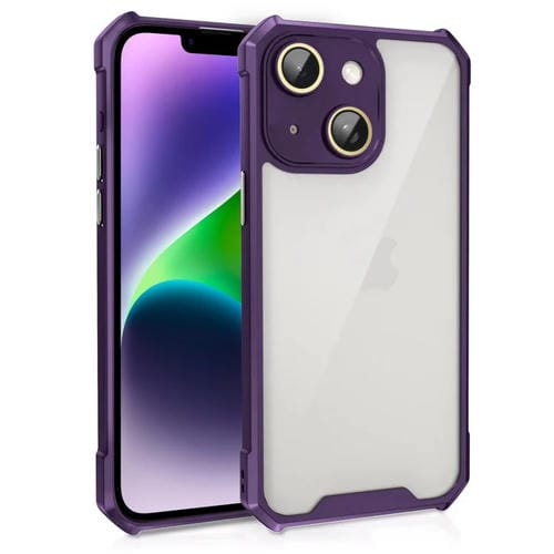 Funda para Teléfono iPhone 14 Acrílico a Prueba de Golpes con Película de Vidrio para Lentes (Púrpura)
