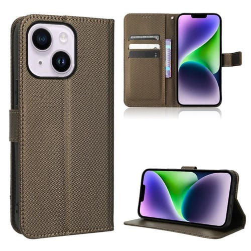 Funda de teléfono iPhone 14 Cuero Textura de Diamante (Marrón)