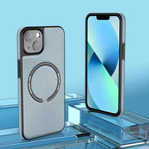 Funda Magnética de Cuero Magsafe para iPhone 14 (Azul, Gris, Blanco)