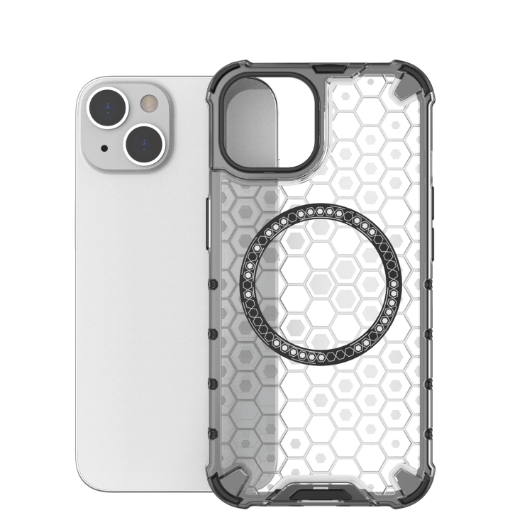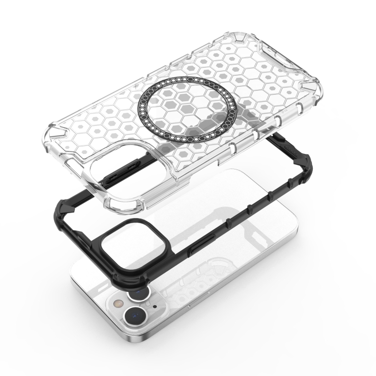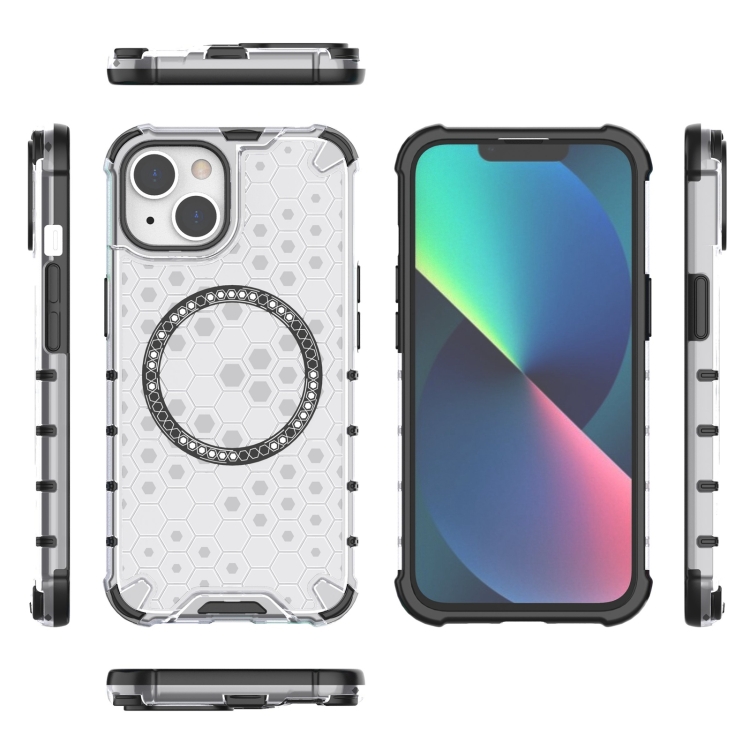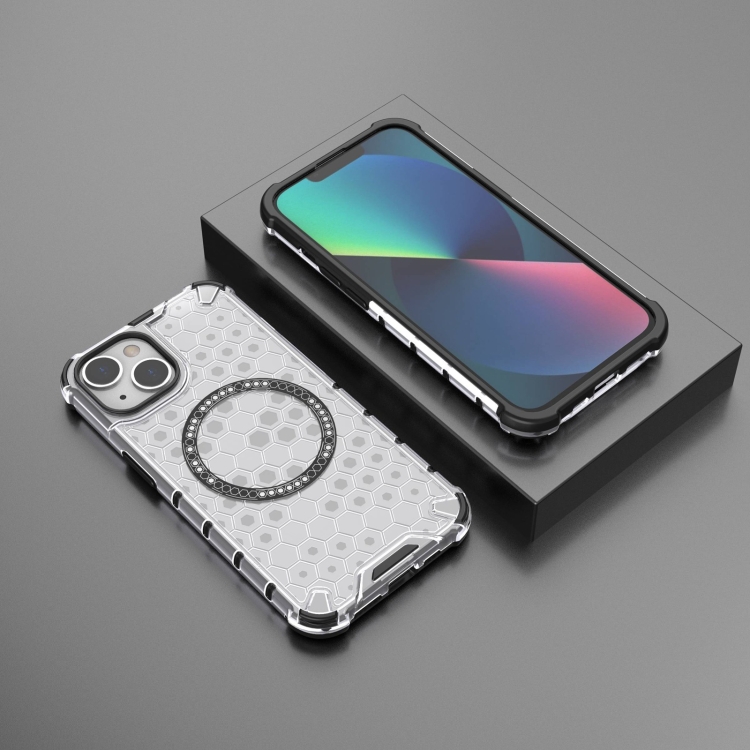 Funda para Teléfono iPhone 14 a Prueba de Golpes con Anillo Magnético en Forma de Panal (Blanco)