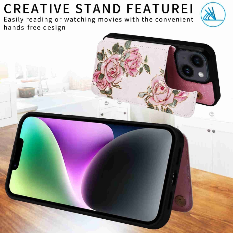 Funda para Teléfono iPhone 14 Antirrobo Rfid con Doble Hebilla Impresa (Rosa)