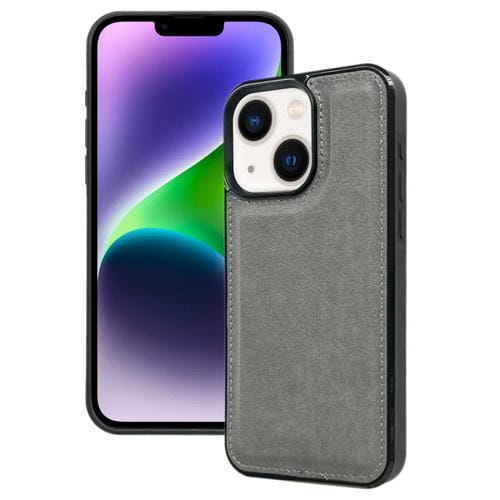 Funda para Teléfono iPhone 14 con Contraportada Textura de Piel de Vaca (Gris)