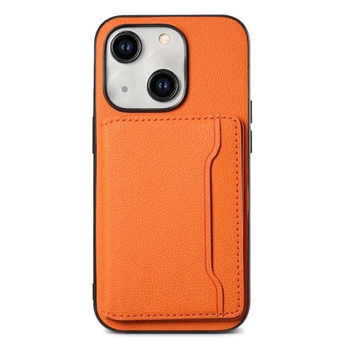 Funda para Teléfono iPhone 14 Diseño Bolsa de Tarjeta Textura de Becerro (Naranja)