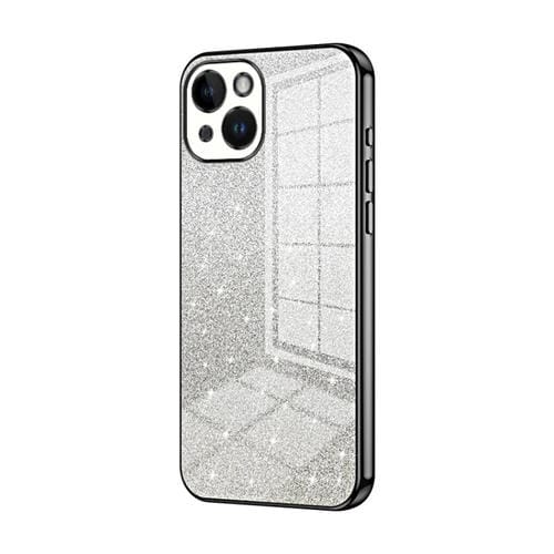 Funda para Teléfono iPhone 14 Galvanizada con Polvo de Brillo Degradado (Negro)