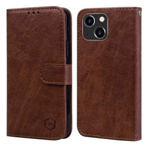 Funda para teléfono iPhone 14 Plus Textura de Cuero Aceitoso PU + TPU (Marrón)