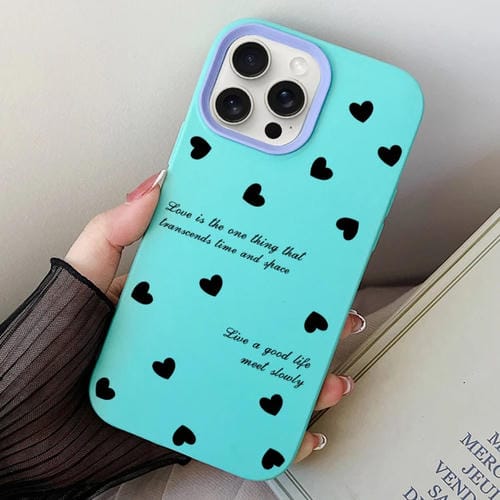 Estuche híbrido para iPhone 14 Pro Love Hearts PC y TPU (Cian Cielo)