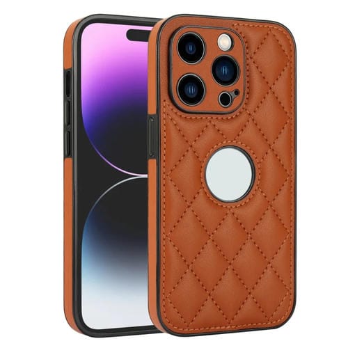 Funda para Teléfono iPhone 14 Pro Max con Contraportada de Cuero Rómbico (Marrón)