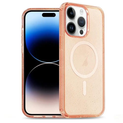 Funda para Teléfono iPhone 14 Pro Max Glitter Powder TPU Hybrid Magsafe (Naranja)