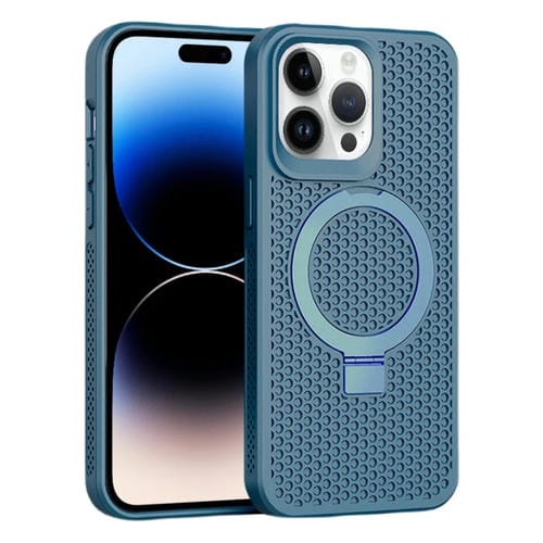 Funda para iPhone 14 Pro Max Skin Feel PC + TPU Magnética con Enfriamiento y Soporte (Azul Marino)