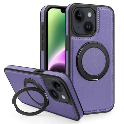 Funda para teléfono Yashi iPhone 14 con soporte magnético giratorio 360 grados (Púrpura)