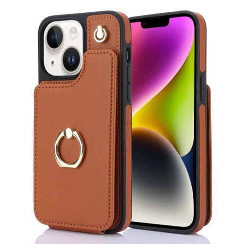 Funda para Teléfono Ym005 Skin Feel Card Bag para iPhone 14 con Cordón Largo (Marrón)