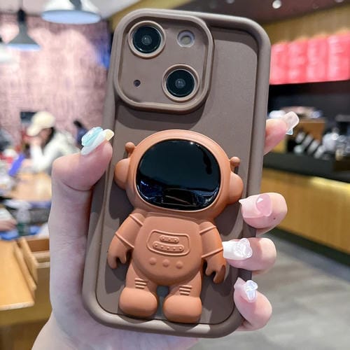 Funda para Teléfono iPhone 15 Astronaut 3D Relief Holder TPU + PC Cobertura Total (Marrón)