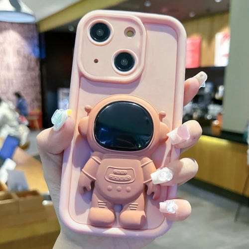 Funda para Teléfono iPhone 15 Astronaut 3D Relief Holder TPU + PC Cobertura Total (Rosa)