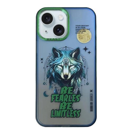 Estuche para Teléfono iPhone 15 Aurora Series con Patrón Pintado Lobo