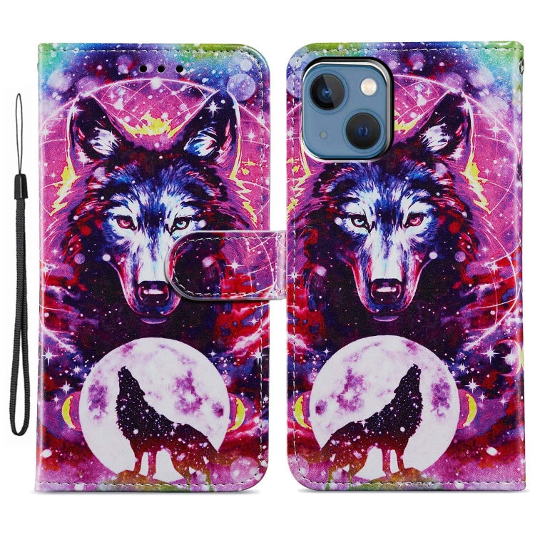 Estuche de Teléfono iPhone 15 Cuero Dibujo a Color Tótem de Lobo