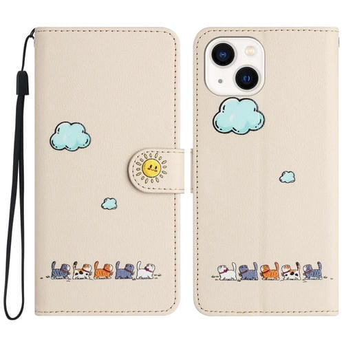 Funda para Teléfono iPhone 15 Cuero Gatos Dibujos Animados (Beige Blanco)
