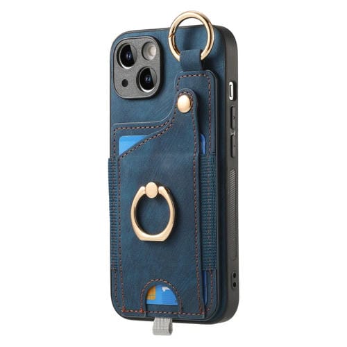Funda para Teléfono iPhone 15 con Bolsa para Tarjeta Anillo y Lazo (Azul)