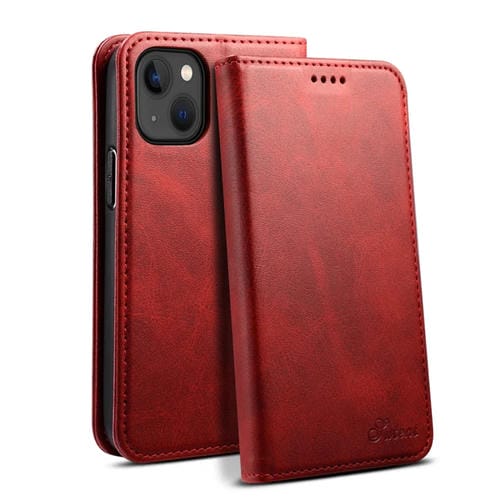 Funda para Teléfono Suteni iPhone 15 Cuero con Tapa Horizontal Textura de Becerro (Rojo)