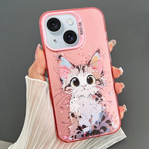 Funda para Teléfono iPhone 15 Imd Animal Graffiti TPU y PC Doble Cara (Gato Elegante)