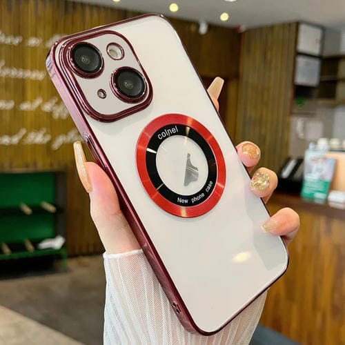 Funda para Teléfono iPhone 15 Magsafe PC Galvanizada Transparente (Rojo Vino)