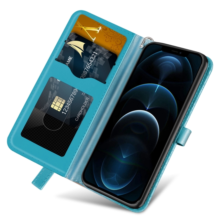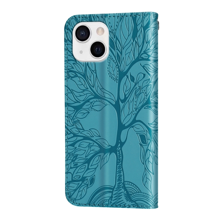 Funda de Cuero para Teléfono iPhone 15 Life Tree Embossing Pattern (Azul)