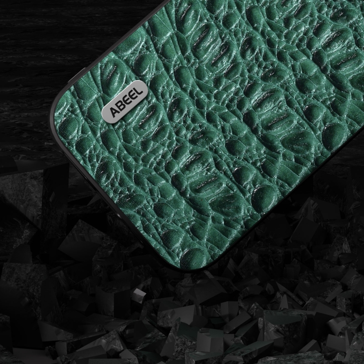 Funda de Teléfono Abeel para iPhone 15 Plus con Borde Negro y Dosel de Cuero Genuino (Verde)