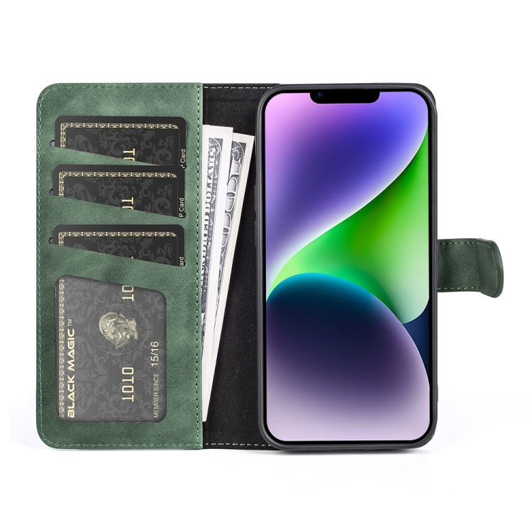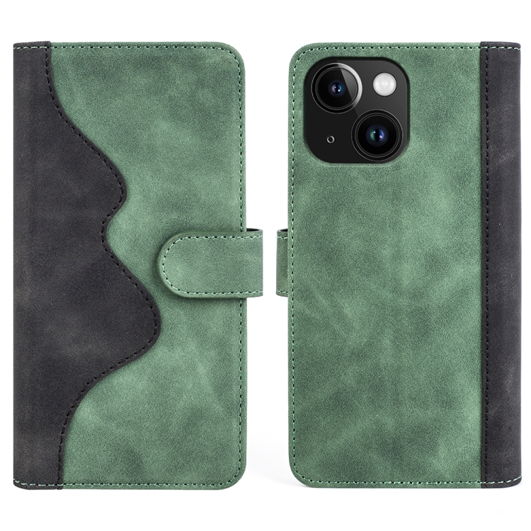 Funda de Cuero para iPhone 15 Plus Costura Horizontal Flip (Verde)