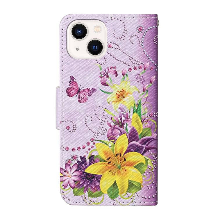 Estuche para Teléfono iPhone 15 Plus con Tapa de Cuero y Dibujo 3D (Flores Amarillas)