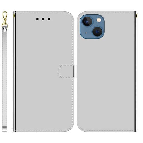 Estuche para Teléfono iPhone 15 Plus Cuero con Superficie de Espejo Imitado (Plata)