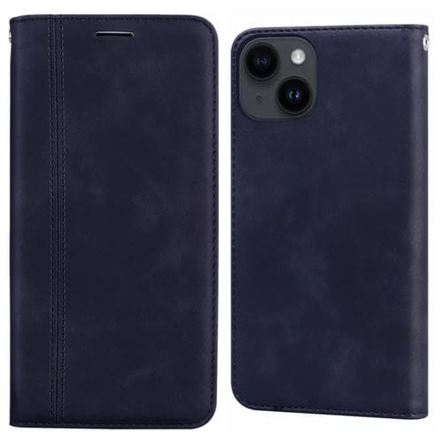 Estuche para teléfono iPhone 15 Plus PU con tapa horizontal magnética esmerilada (Negro)
