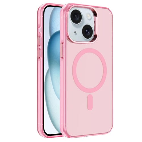 Estuche para Teléfono Híbrido iPhone 15 Plus TPU Imd Magsafe PC Galvanizado (Rosa)