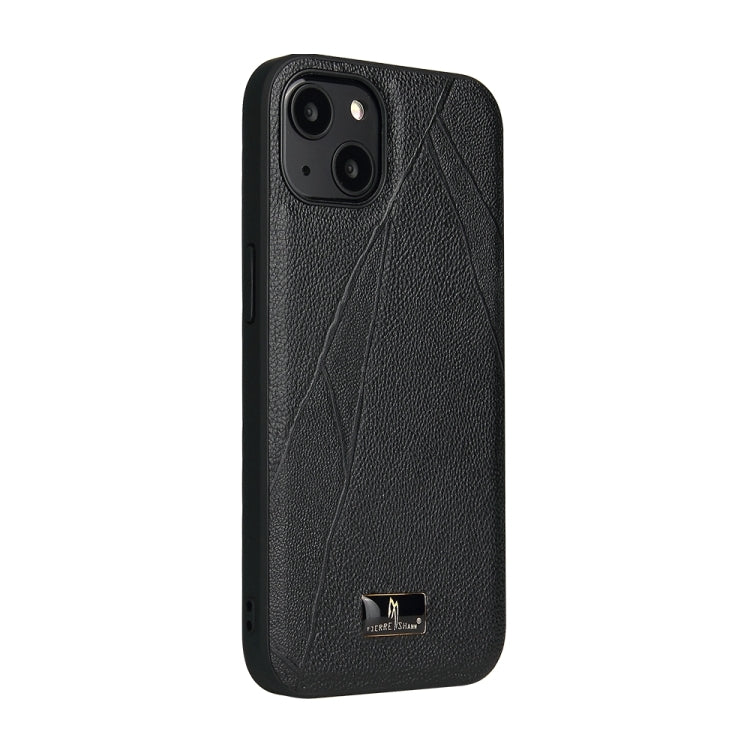 Funda para iPhone 15 Plus Fierre Shann Leather Texture Tapa Trasera (Ox Tendon Black)