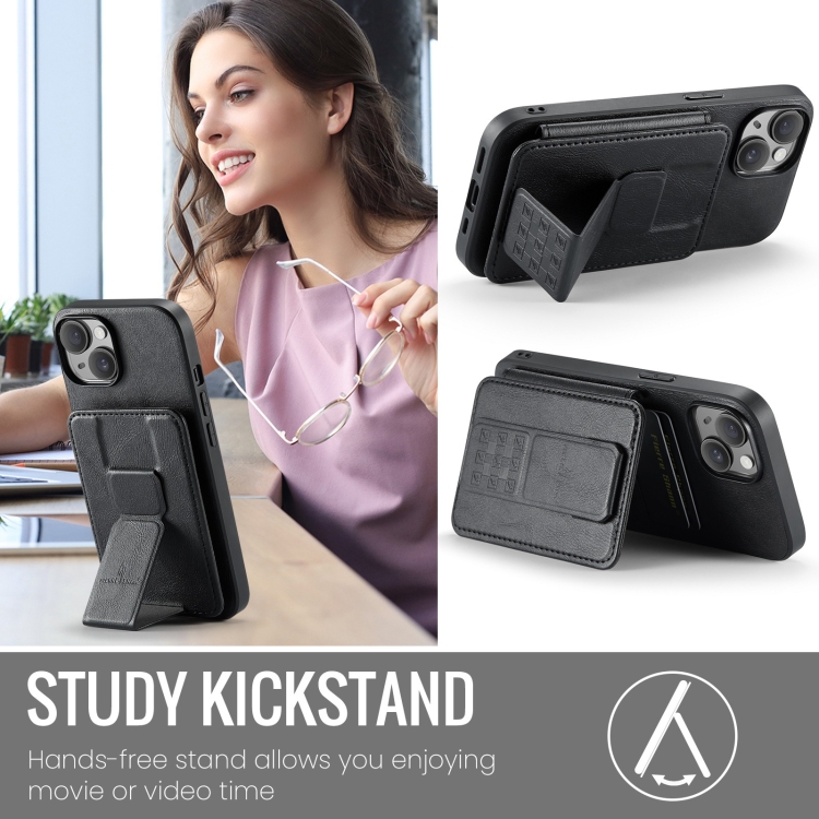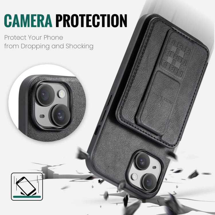 Funda para Teléfono Fierre Shann iPhone 15 Plus Oil Wax con Tarjetero de Cuero de Vaca (Negro)