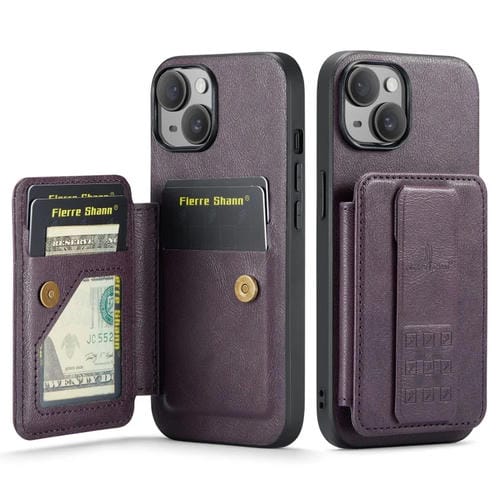 Funda para Teléfono Fierre Shann iPhone 15 Plus Oil Wax con Tarjetero de Cuero de Vaca (Púrpura)