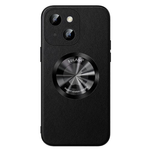 Funda de teléfono para iPhone 15 Plus Magnética Magsafe de cuero de microfibra sulada (Negro)