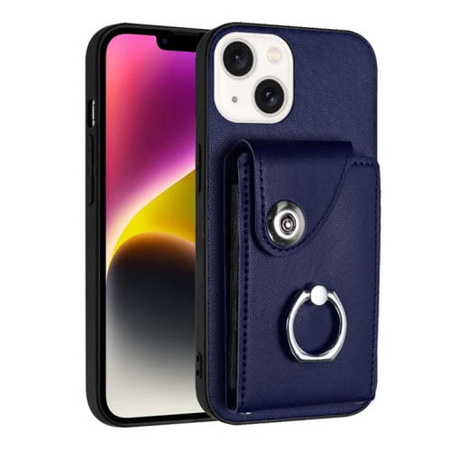 Funda para Teléfono iPhone 15 Plus con Soporte para Anillo y Bolsa para Tarjeta (Azul)