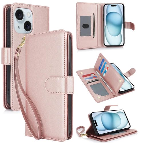 Funda para Teléfono iPhone 15 Plus Cuero Rfid con Billetera MultiTarjeta (Oro Rosa)