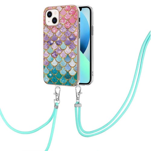 Estuche TPU para iPhone 15 Plus Galvanoplastia Patrón Imd a Prueba de Golpes con Cordón (Escamas de Colores)