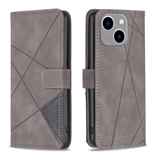 Funda de Cuero para iPhone 15 Plus Hebilla Magnética Rombo Textura (Gris)