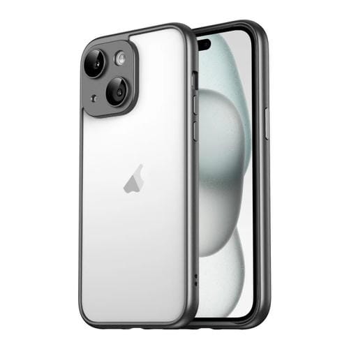 Título optimizado: Marco de Borde Puro PC para iPhone 15 Plus con Película de Vidrio para Lentes (Negro)