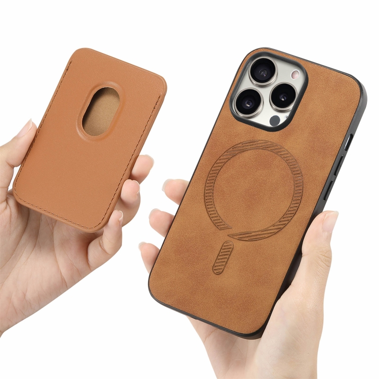 Funda para Teléfono iPhone 15 Plus Retro Magsafe Card Bag Pu con Contraportada (Marrón)