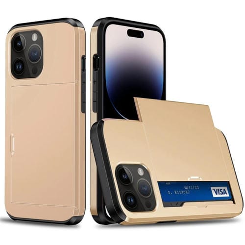 Estuche para Teléfono iPhone 15 Pro Armadura a Prueba de Golpes Ranura para Tarjeta Deslizante (Oro)