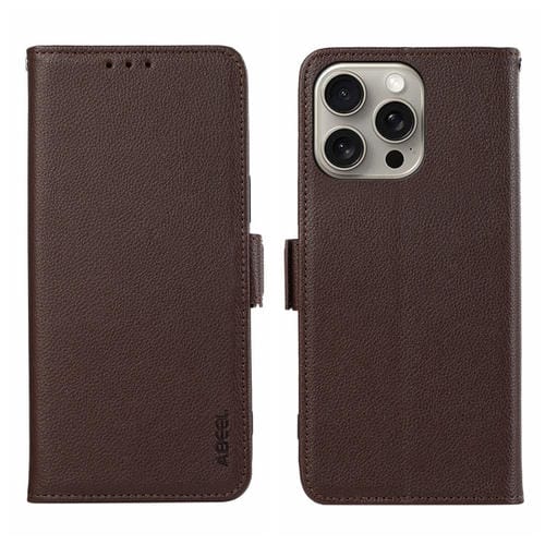 Funda para Teléfono Abeel iPhone 15 Pro Max Rfid Cuero Patrón Litchi Magnético (Marrón)