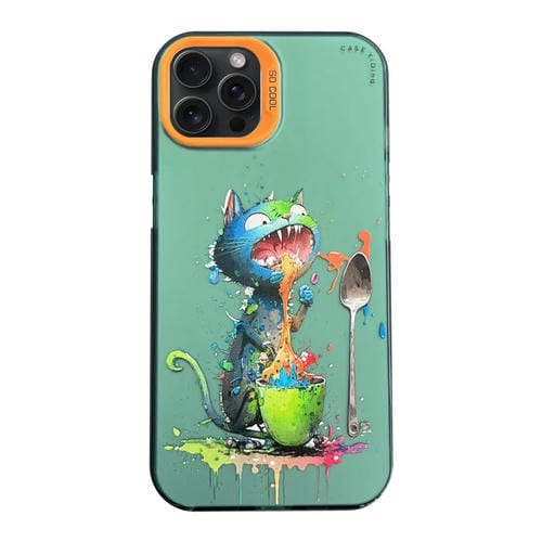 Funda para Teléfono iPhone 15 Pro Max Cartoon Animal Graffiti PC y TPU (Gato Azul)