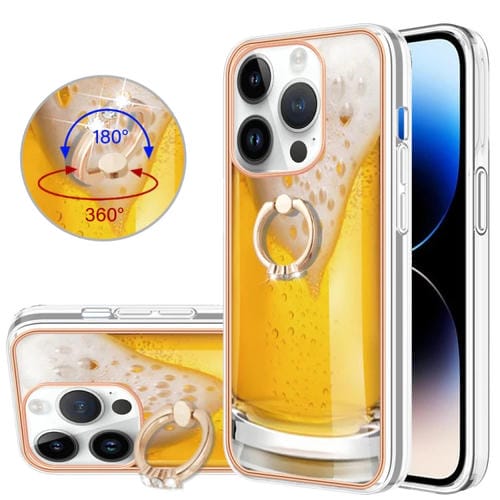 Caja de Teléfono iPhone 15 Pro Max Galvanoplastia Imd Doble Cara con Soporte para Anillo (Cerveza de Barril)