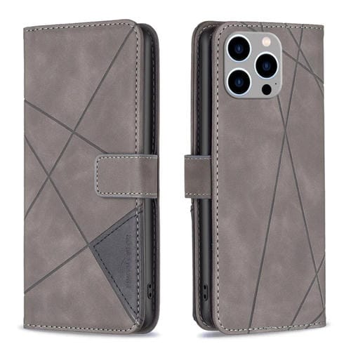 Funda para teléfono iPhone 15 Pro Max Hebilla Magnética Rombo Textura Cuero (Gris)