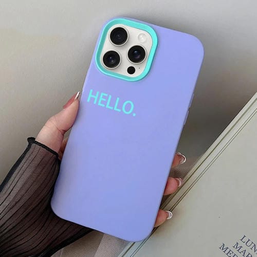 Estuche híbrido para teléfono iPhone 15 Pro Max Hello Word PC y TPU (Púrpura)