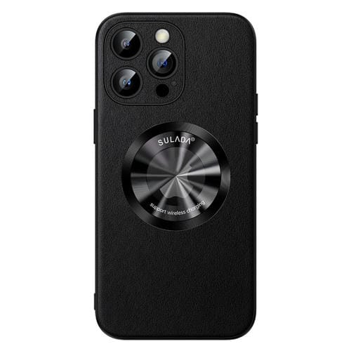 Funda de teléfono Sulada para iPhone 15 Pro Max Magnética de Cuero de Microfibra Magsafe (Negro)