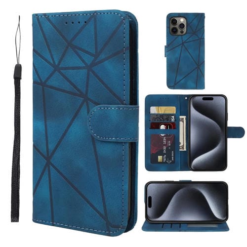 Funda para Teléfono iPhone 15 Pro Skin Feel Cuero Líneas Geométricas (Azul)